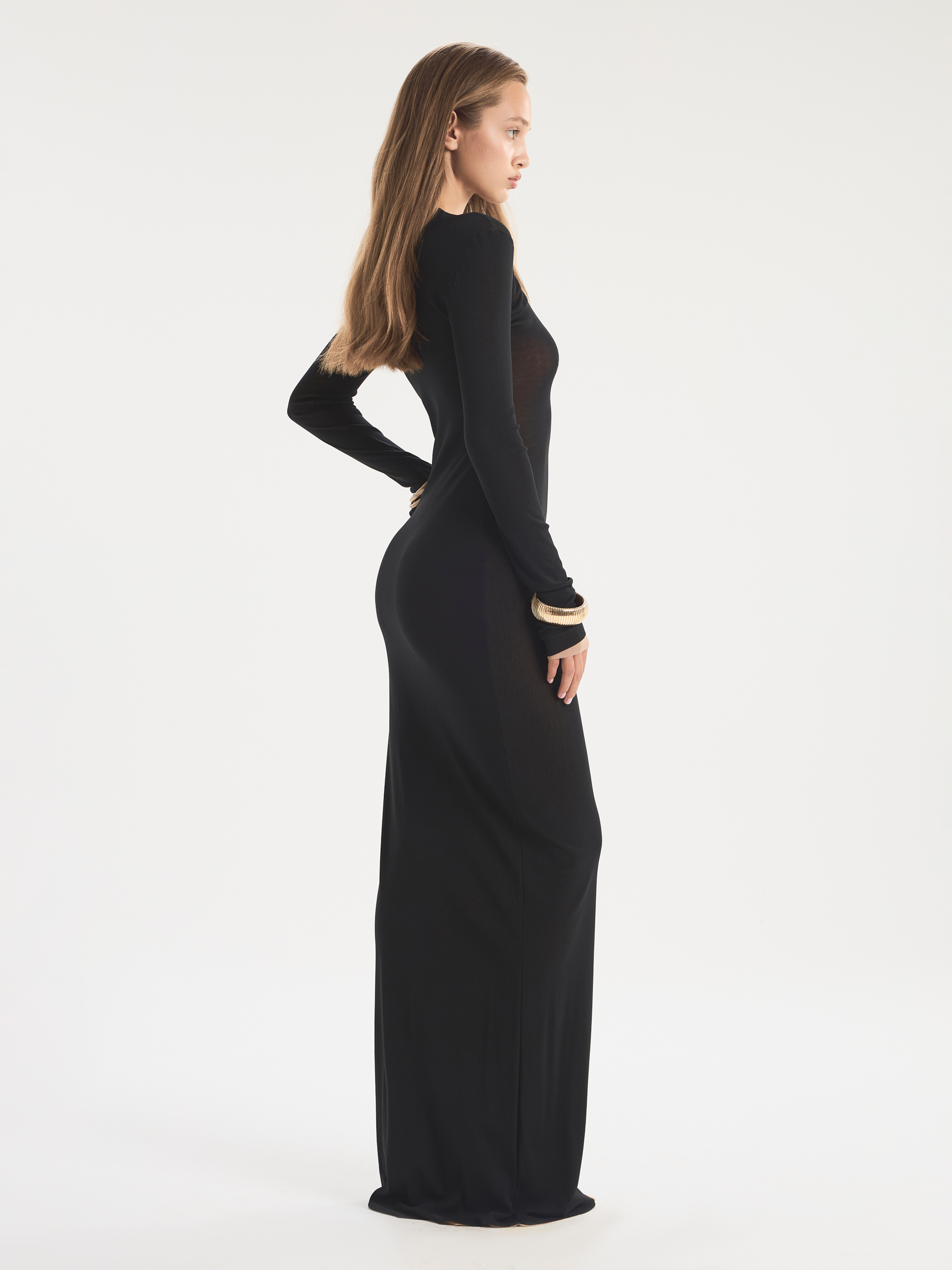 Двустороннее платье-макси из мягкой трикотажной сетки. Модель можно носить на обе стороны, экспериментируя с образами. Бежевый верх с контрастными швами выглядит словно вторая кожа, создавая иллюзию обнаженности. Черная сторона платья имитирует прозрачность за счет бежевой изнанки. Платье идеально для вечеров на пляже и вечеринок. Легкое и многофункциональное, оно способно дать больше, чем вы привыкли.