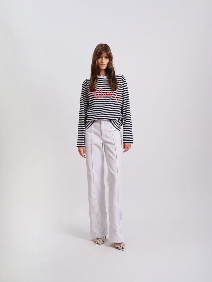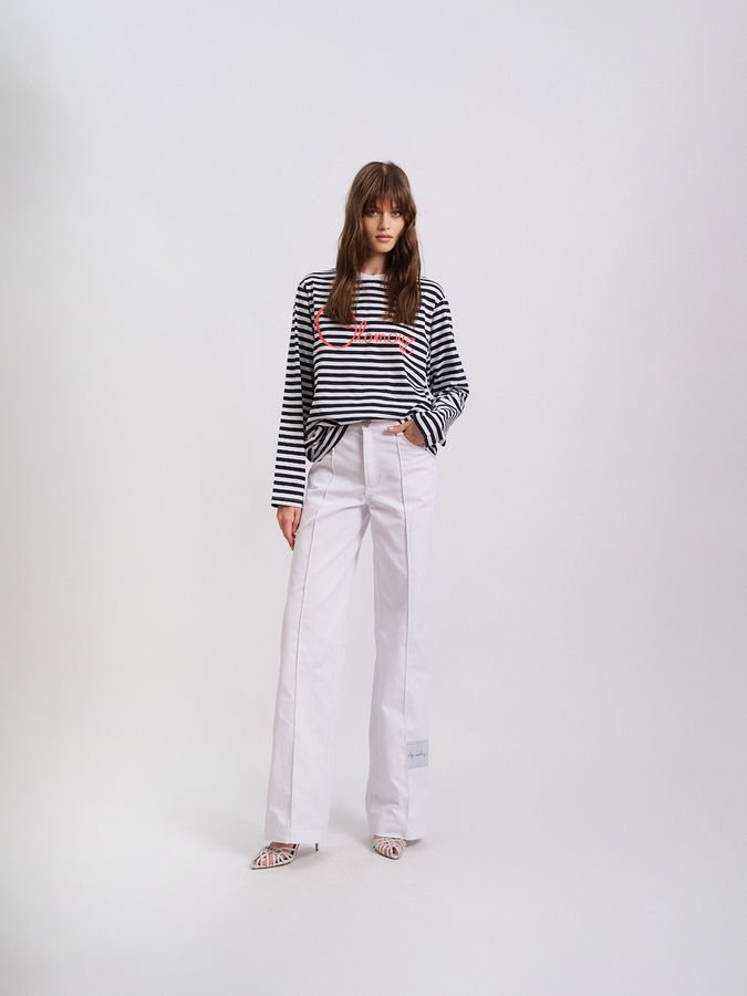 Les Archives' straight cut jeans are a flawless staple for your closet. The chunky denim holds its shape and creates the right silhouette. The brand's iconic gleaming button and active logo gently accentuate their origins. Style them with stripes or a semi-transparent plaid top, depending on the occasion and your mood.