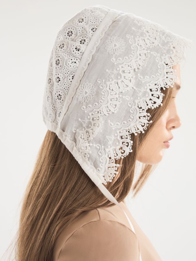 Мягкий чепчик из хлопкового батиста с ажурным шитьем. Держится на голове за счет кулиски со шнурком, который можно завязывать или оставлять свободным. Благодаря ажурности материал прекрасно дышит, чепчик станет небанальной альтернативой летним головным уборам. Полуприлегающий крой не приминает волосы, позволяя сохранить укладку. Создающий иллюзию невинности, чепчик выглядит соблазнительно.