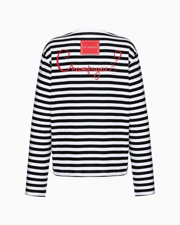 Тельняшка с надписью "Voulez vous Champagne?" и логотипом бренда на спине.