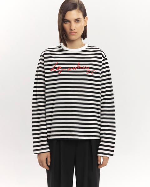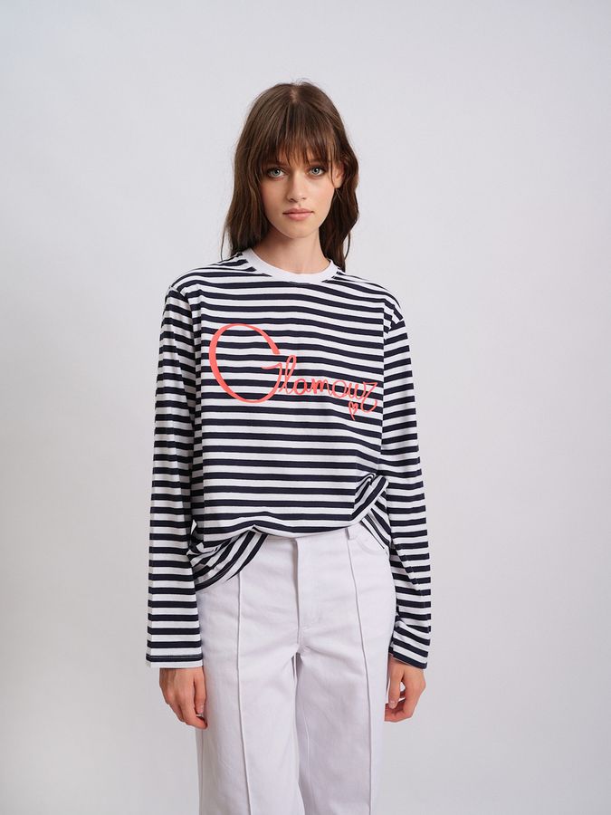 Легендарная тельняшка бренда Les Archives с новым принтом. Она уже успела покорить и разбить тысячи сердец. На этот раз с принтом Glamour - можете воспринимать его как аффирмацию или как стиль жизни. Сочетайте тельняшку буквально с любым айтемом из коллекции, создавая вау-эффект от каждого своего выхода.