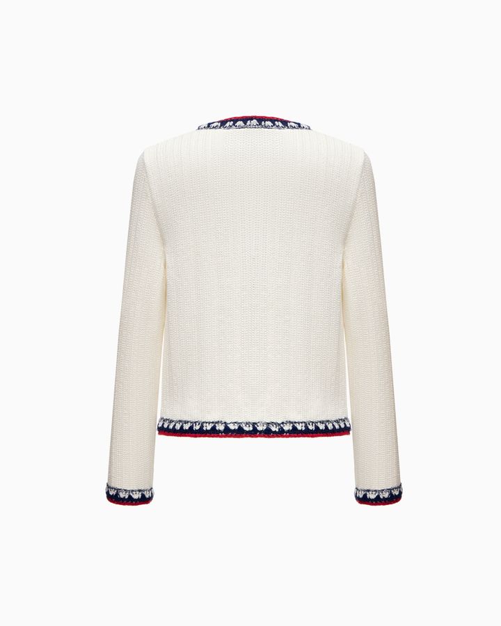 Этот вязаный жакет от Les Archives — современная кутюрная интерпретация классического укороченного жакета. Несколько видов вязки создают уникальную текстуру, которая привлекает внимание, а сверкающие ювелирные пуговицы становятся ярким акцентом, характерным для бренда. Контрастные белые детали, окаймляющие карманы и края жакета, придают ему дополнительную выразительность. Сочетайте его с монохромными вязаными шортами и босоножками на шпильке, завершая образ, но не выход в нем.